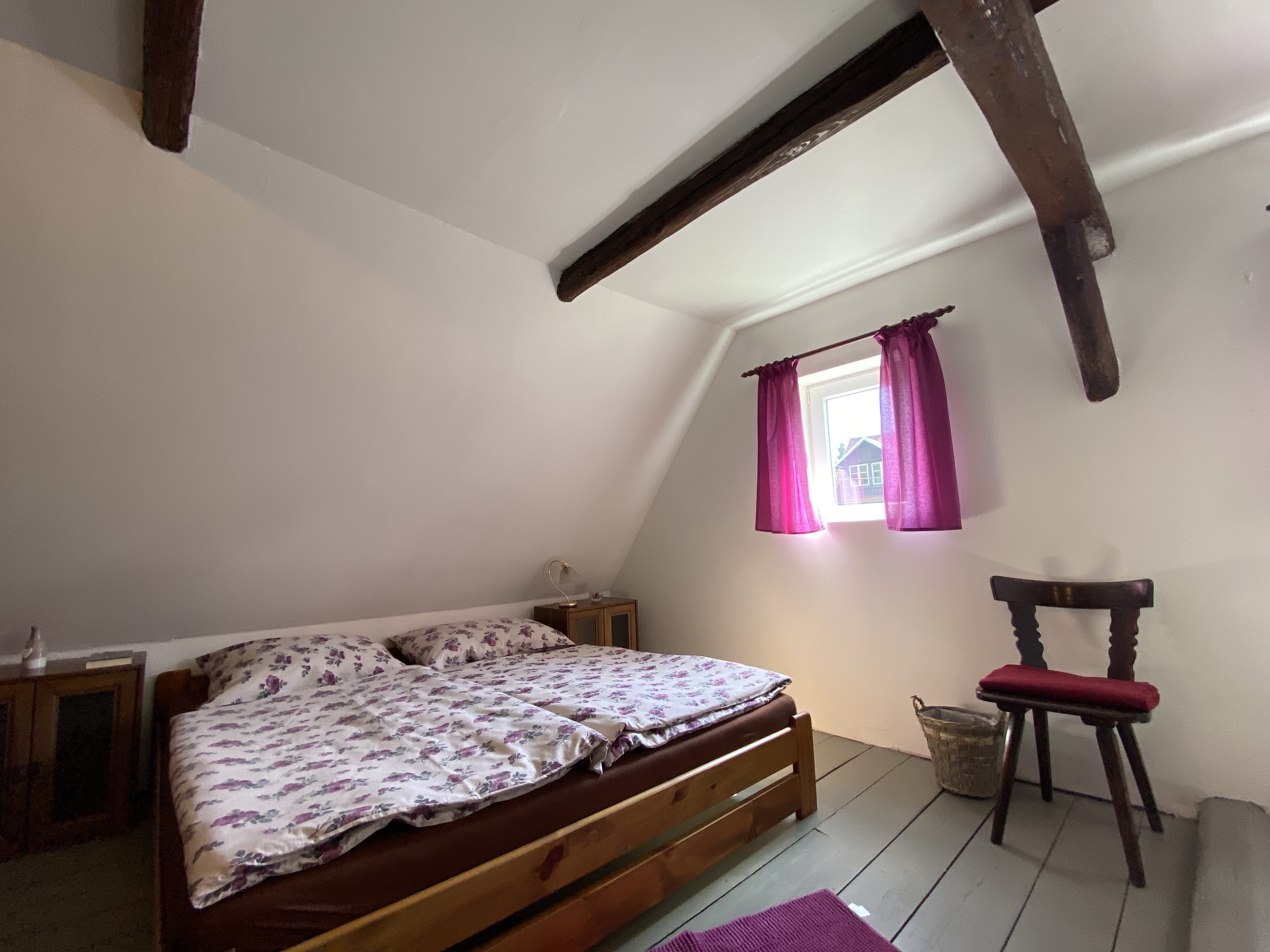 Sie können in einem 4- und einem 5-Bettzimmer im Dachgeschoss und einem 2-3 Bettzimmer im Erdgeschoss, das mit dem Wohnzimmer verbunden ist, übernachten. Dieses Zimmer kann als Schlafzimmer oder Ruheraum genutzt werden.
